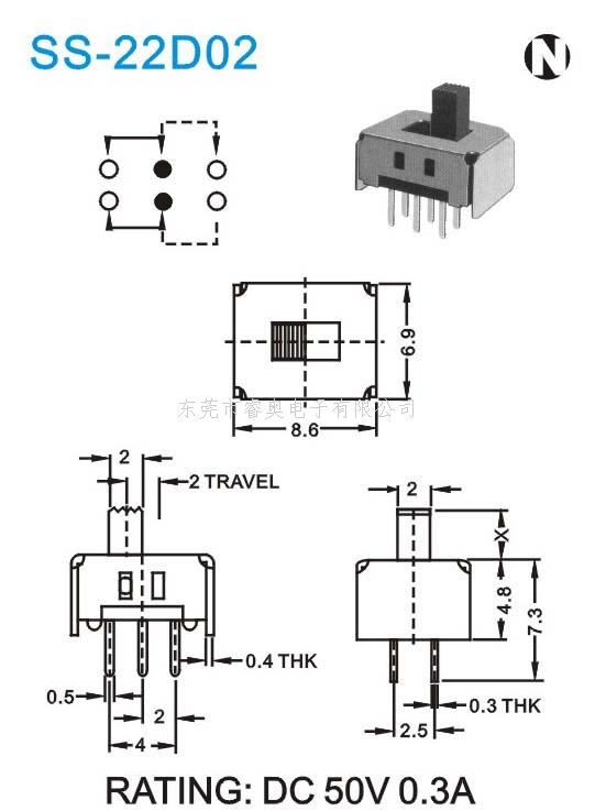 SS拨动开关 SS-22D02 D12