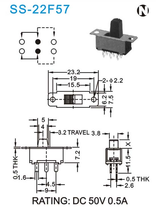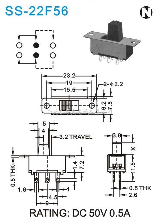 SS拨动开关 SS-22F56 F57