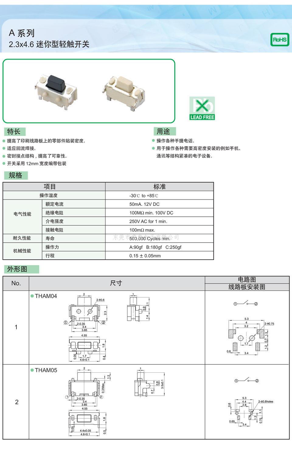 浙江轻触开关2.3*4.6侧按THAM05