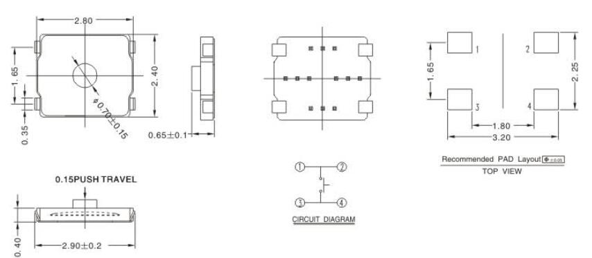 贴片轻触开关2.4*2.8四脚