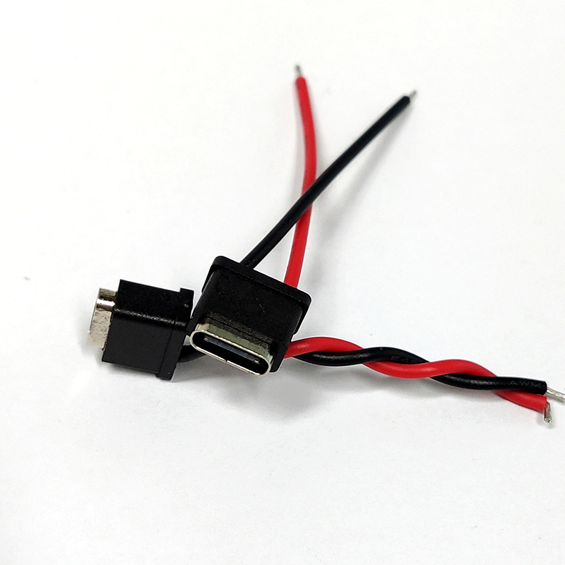TYPE C 2P焊线式防水母座H10.0mm 带硅胶线L48.0mm